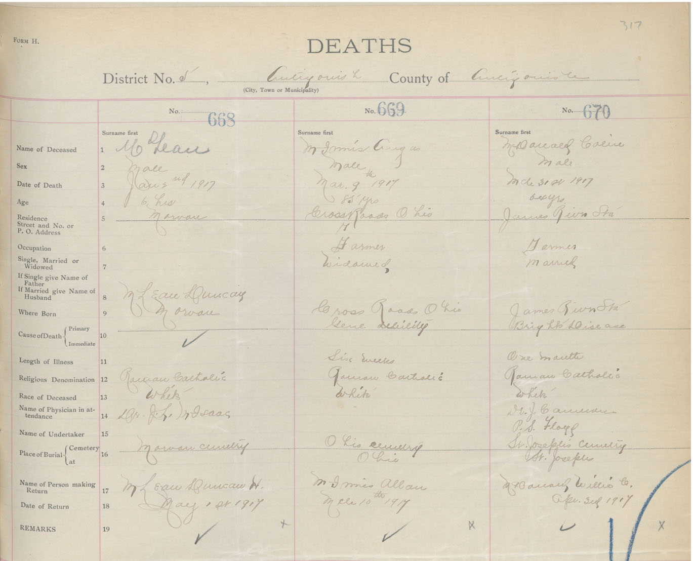 Male Death Registration: Year: 1917 book: 26 page: 317 number: 668