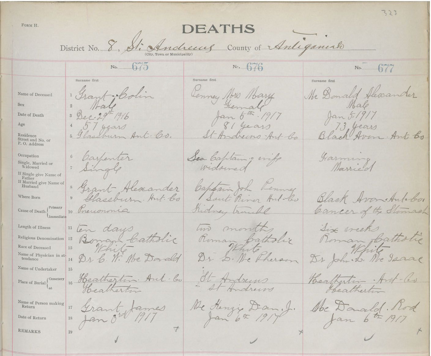 Male Death Registration: Year: 1917 book: 26 page: 323 number: 675