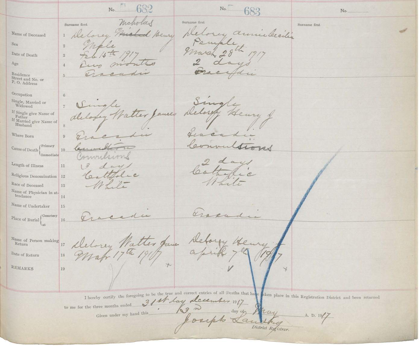 Male Death Registration: Year: 1917 book: 26 page: 325 number: 682