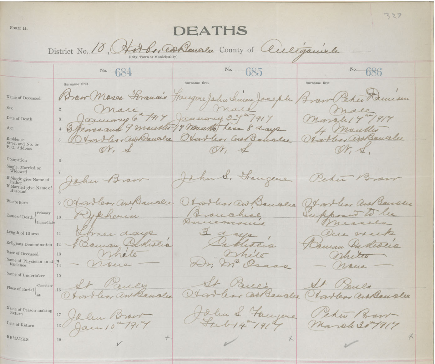 Male Death Registration: Year: 1917 book: 26 page: 327 number: 684