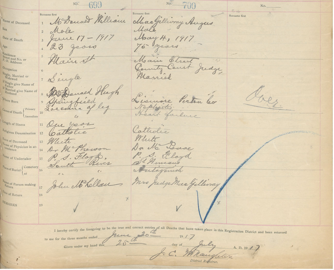 Male Death Registration: Year: 1917 book: 26 page: 335 number: 700