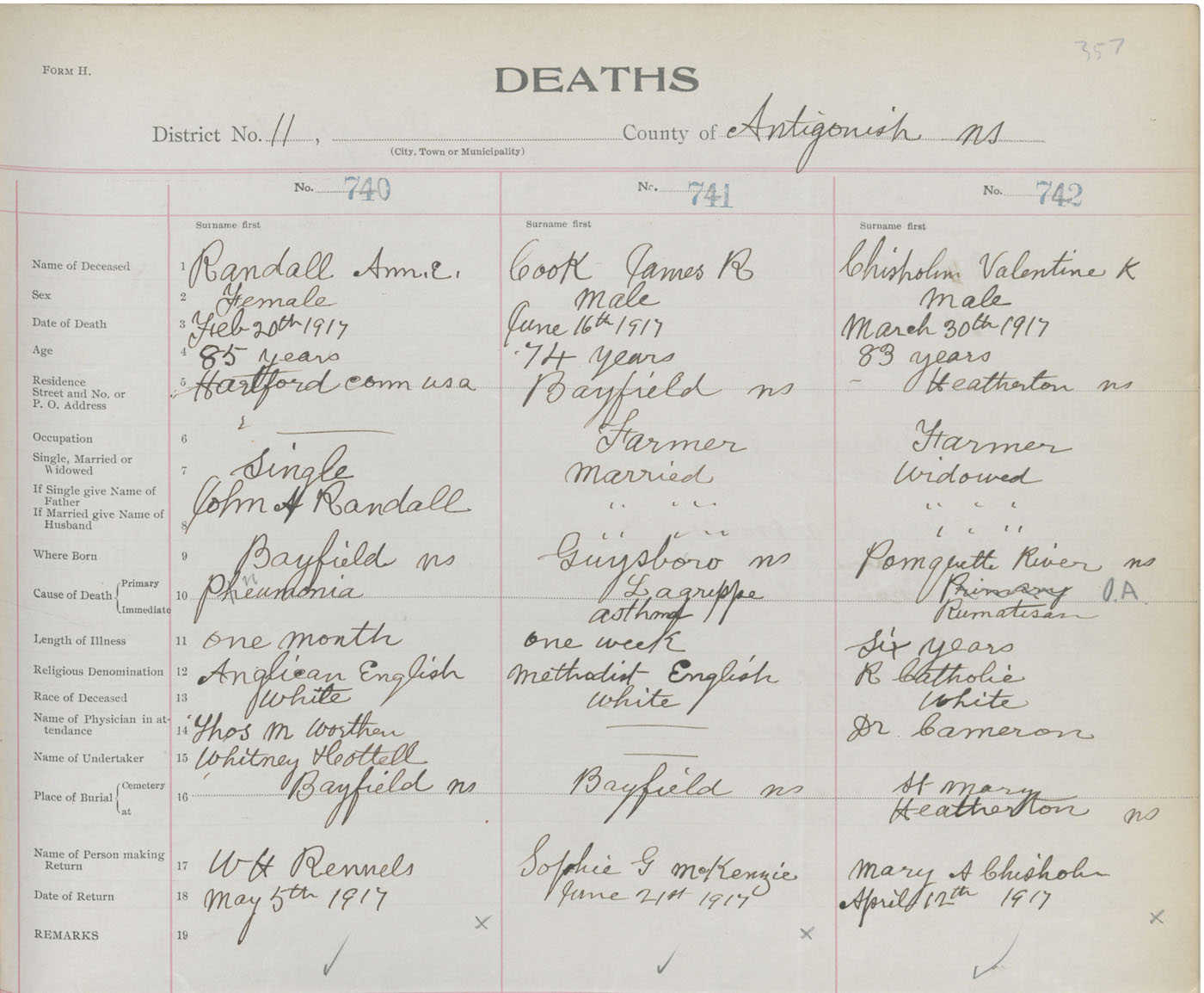 Male Death Registration: Year: 1917 book: 26 page: 357 number: 742
