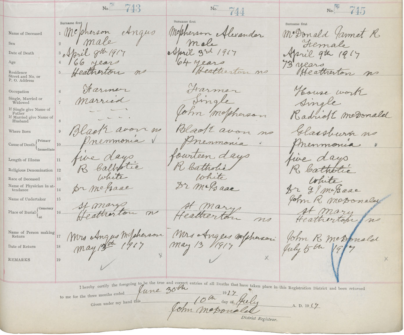 Female Death Registration: Year: 1917 book: 26 page: 357 number: 745