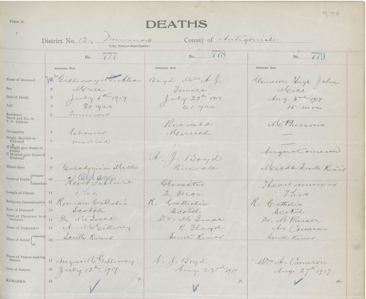 Male Death Registration: Year: 1917 book: 26 page: 379 number: 779