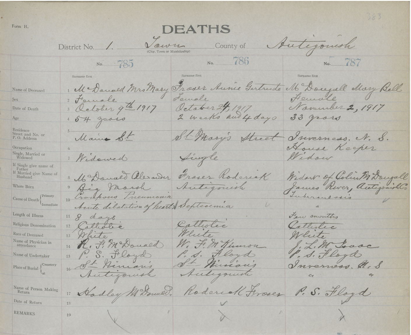 Female Death Registration: Year: 1917 book: 26 page: 383 number: 787