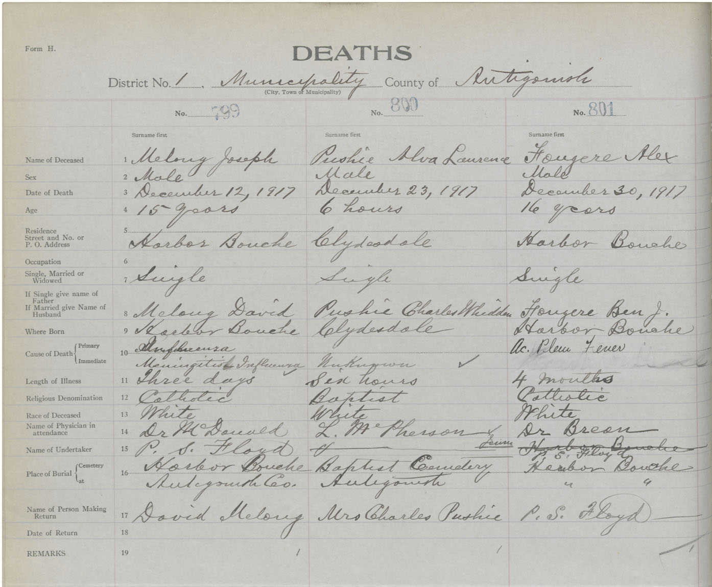 Male Death Registration: Year: 1917 book: 26 page: 386 number: 801