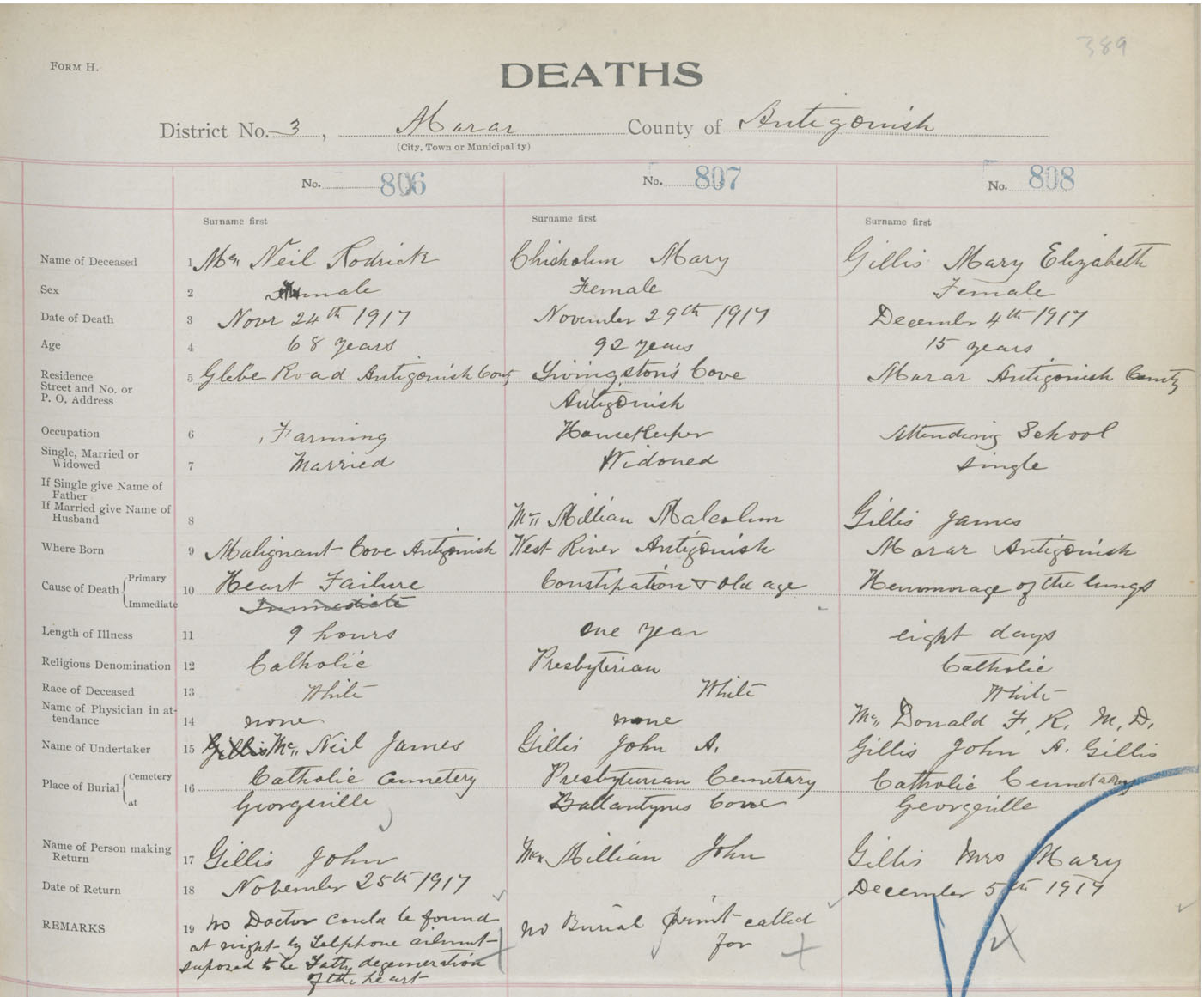 Female Death Registration: Year: 1917 book: 26 page: 389 number: 808