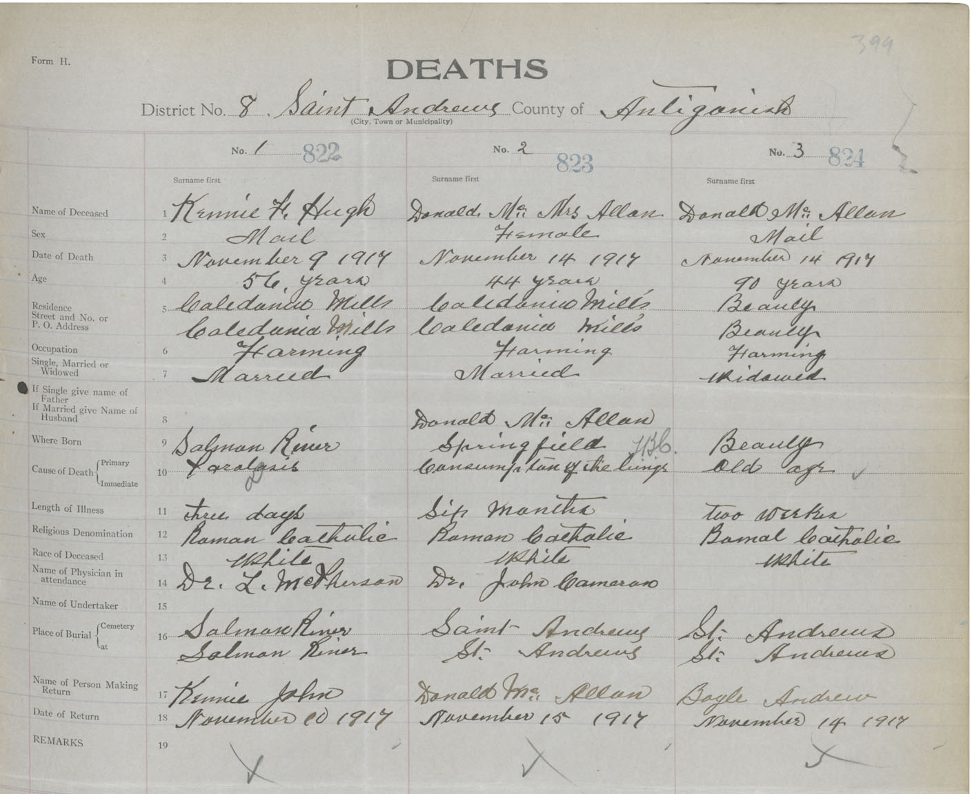Male Death Registration: Year: 1917 book: 26 page: 399 number: 824