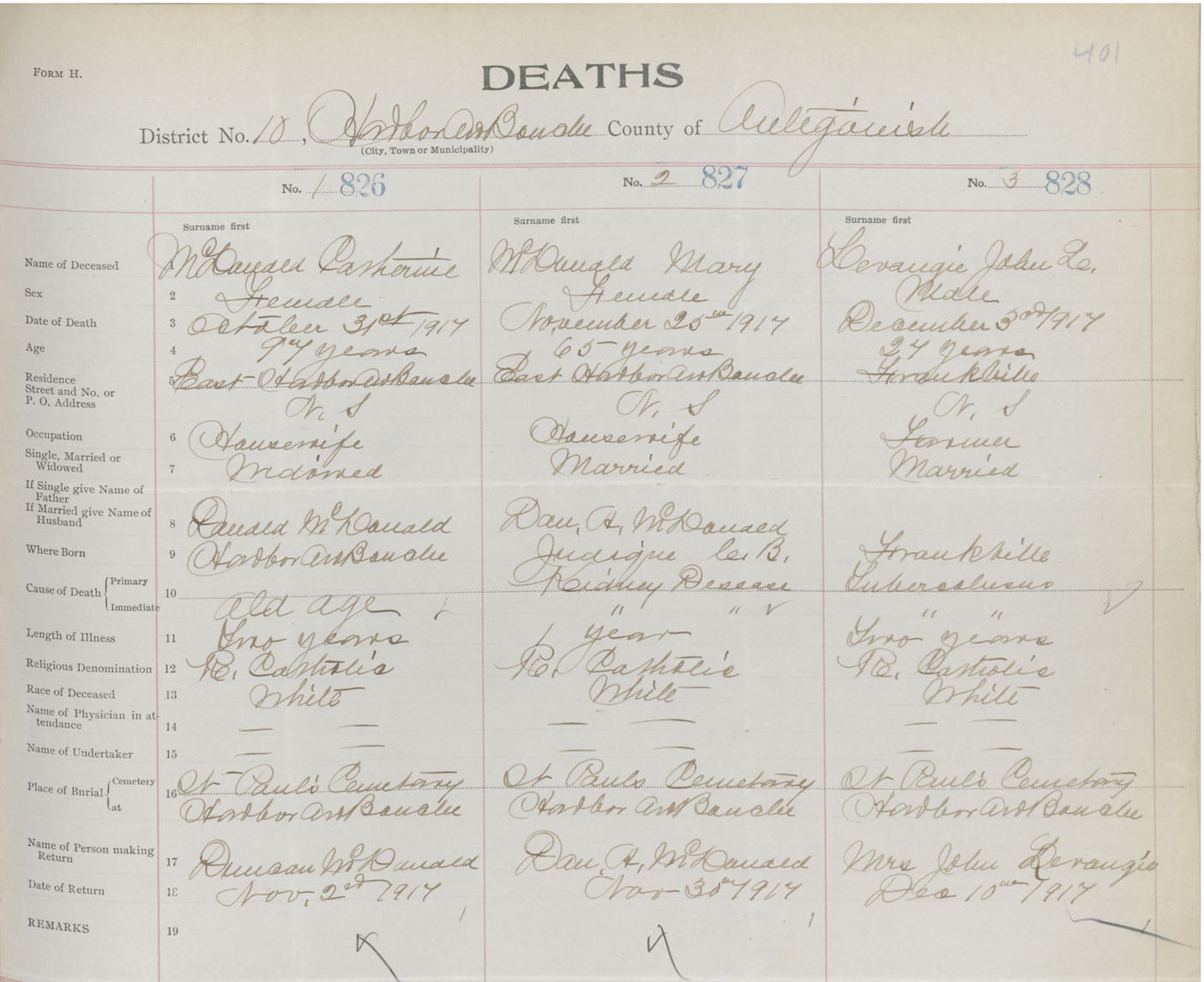 Male Death Registration: Year: 1917 book: 26 page: 401 number: 828