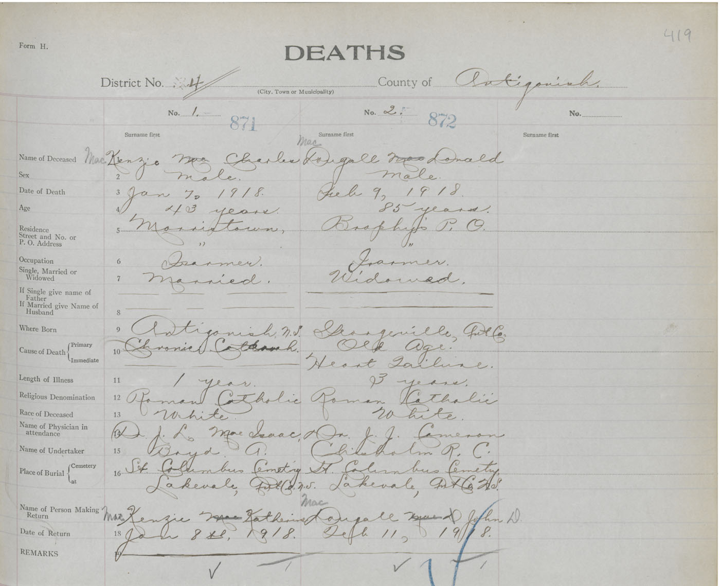 Male Death Registration: Year: 1918 book: 26 page: 419 number: 872