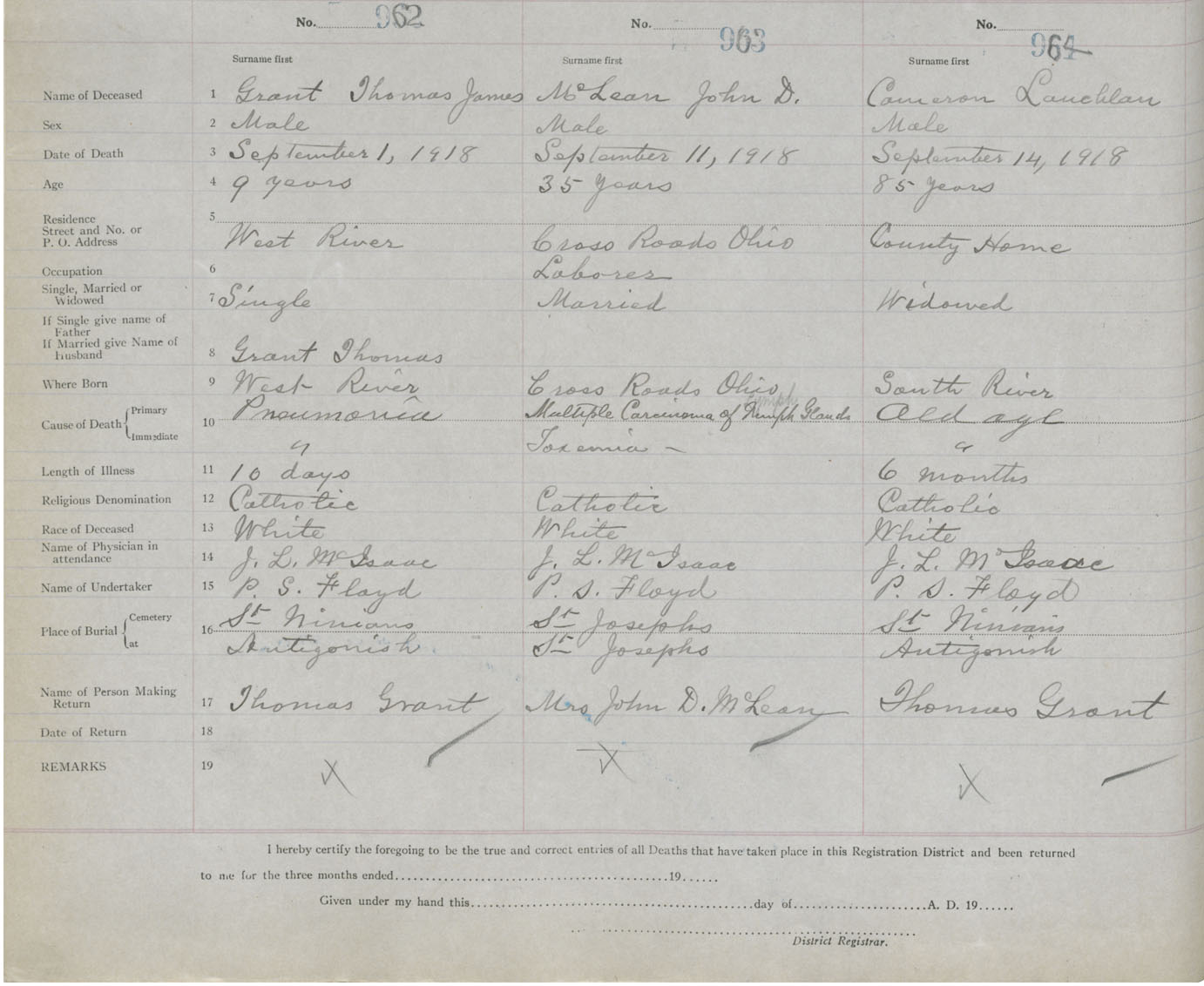 Male Death Registration: Year: 1918 book: 26 page: 464 number: 962