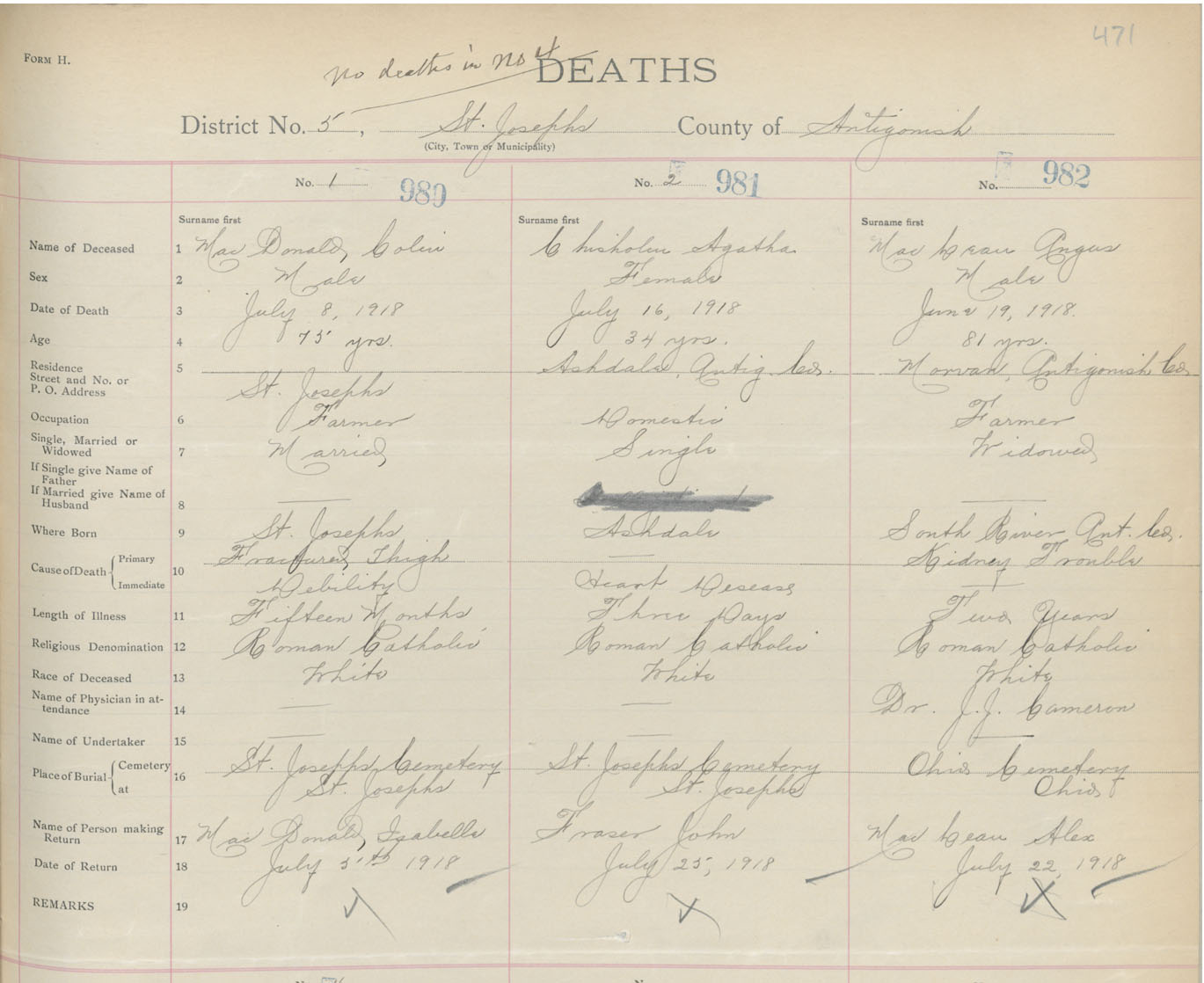 Male Death Registration: Year: 1918 book: 26 page: 471 number: 980