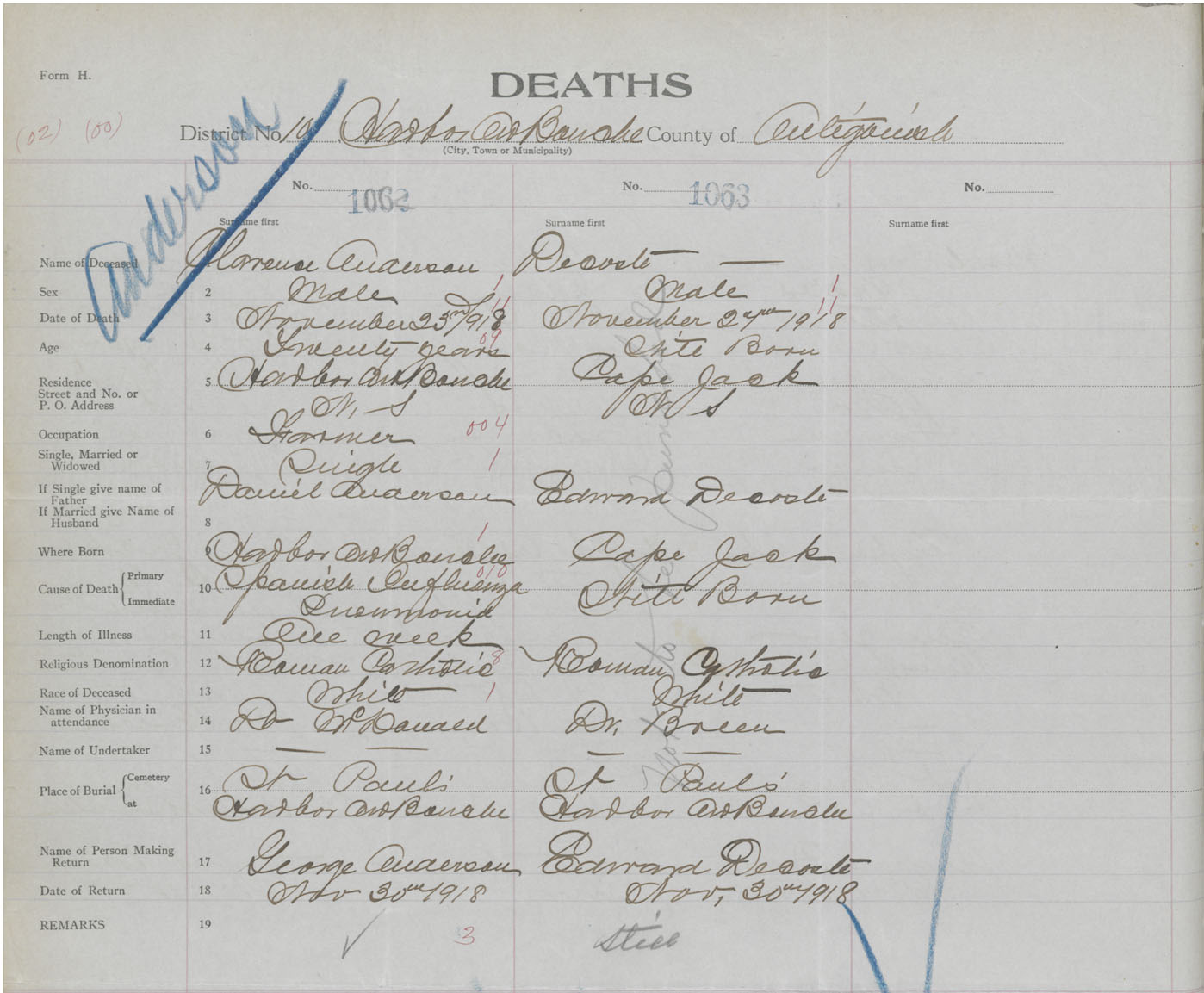 Male Death Registration: Year: 1918 book: 26 page: 510 number: 1062