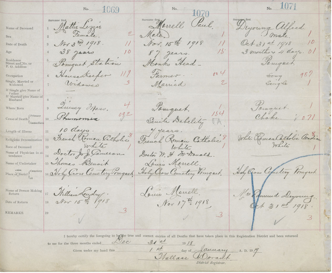 Female Death Registration: Year: 1918 book: 26 page: 513 number: 1069