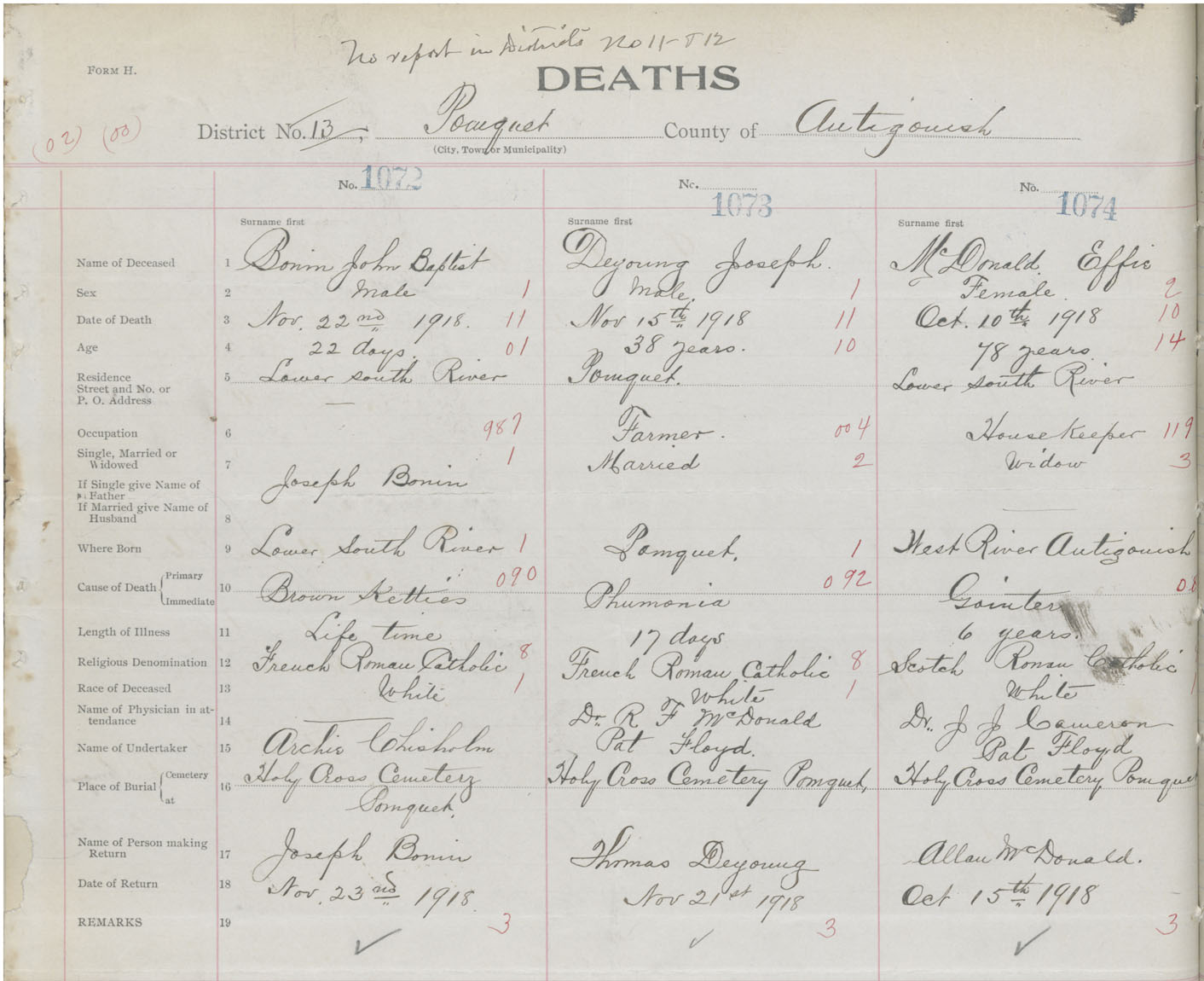 Male Death Registration: Year: 1918 book: 26 page: 514 number: 1072