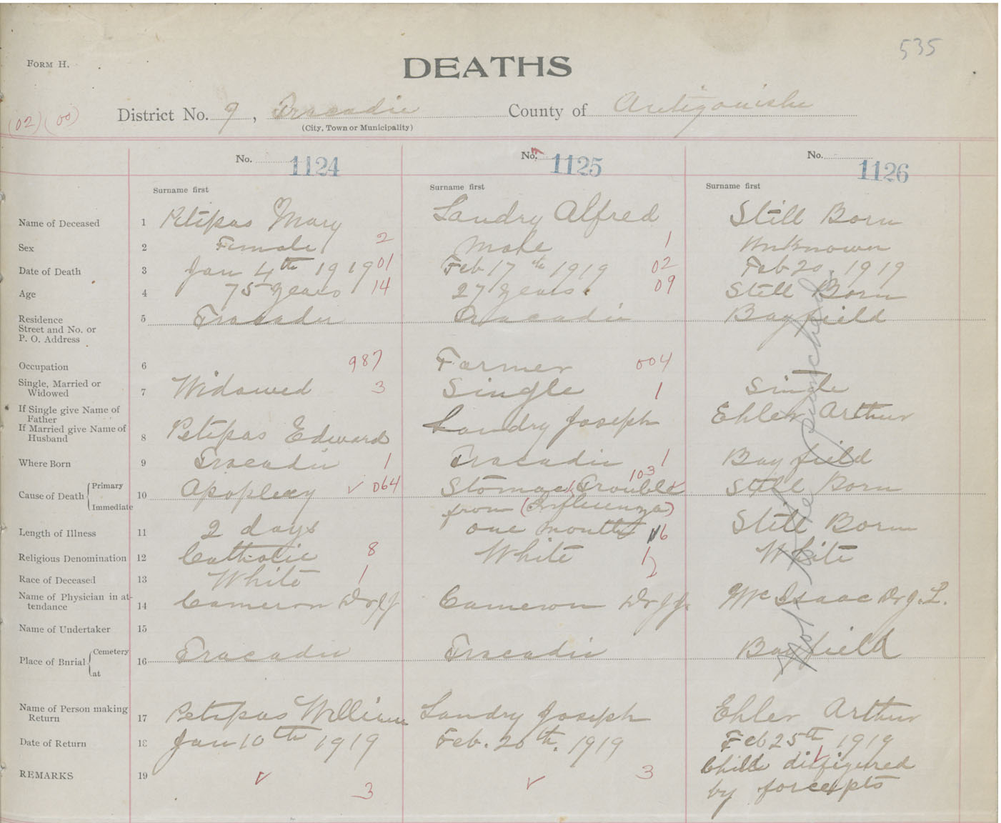 Female Death Registration: Year: 1919 book: 26 page: 535 number: 1124