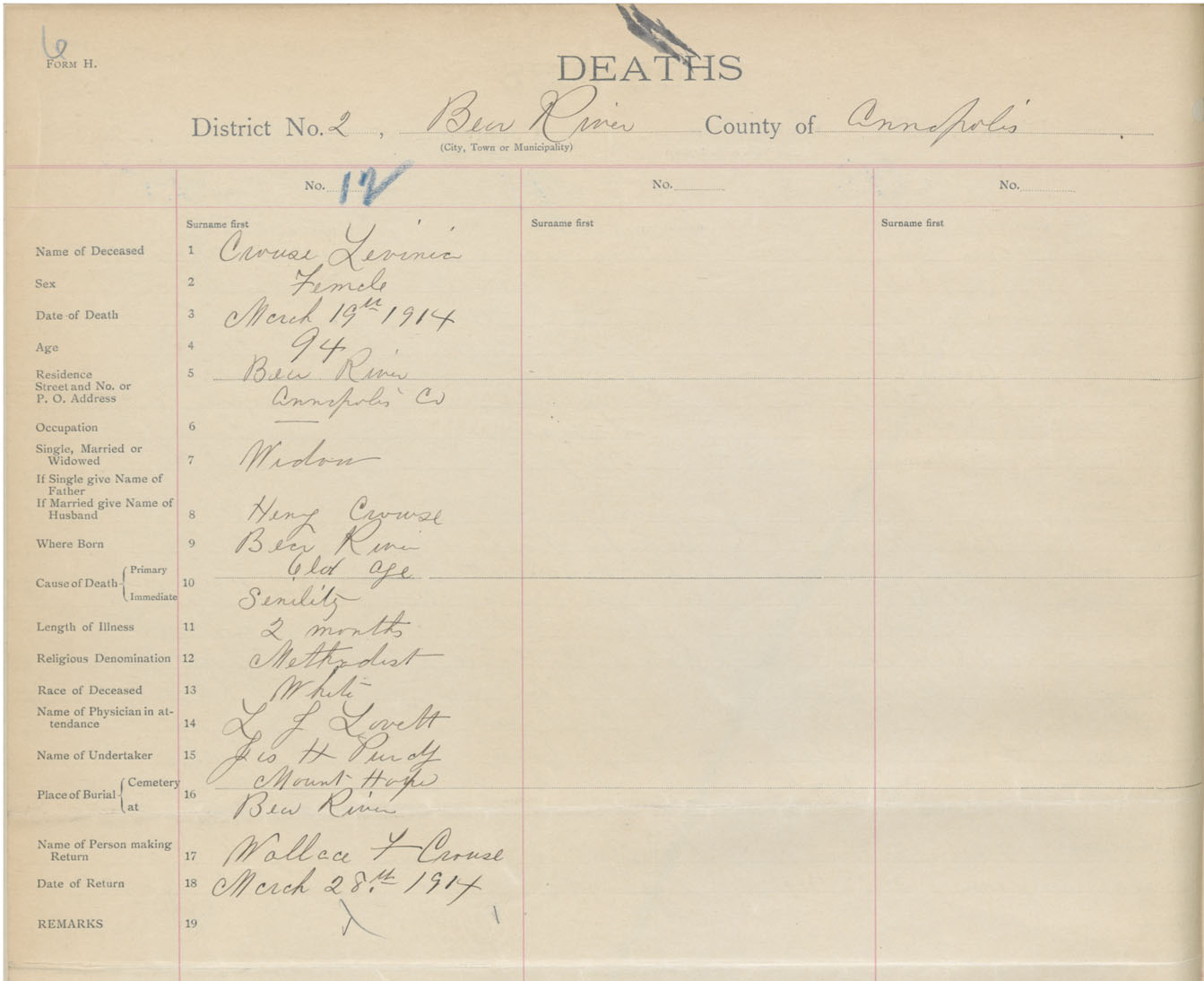 Death Registration: Year: 1914 book: 27 page: 6 number: 12