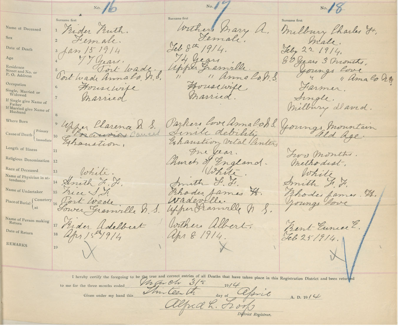 Death Registration: Year: 1914 book: 27 page: 7 number: 16