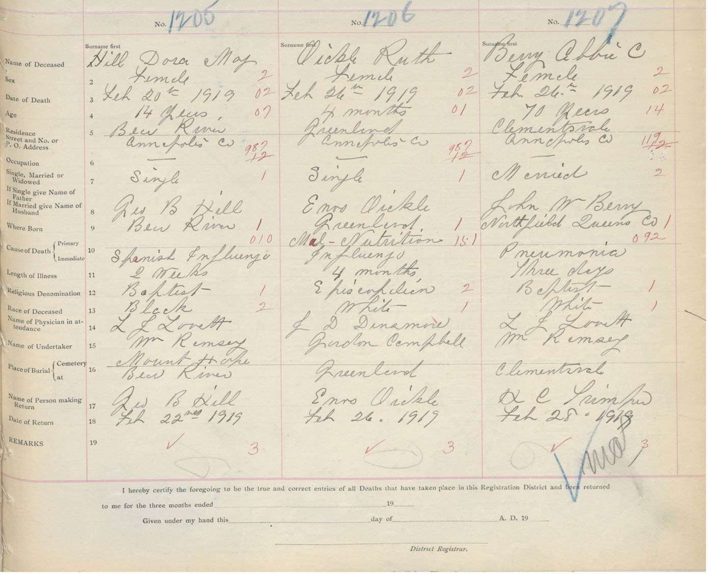 Death Registration: Year: 1919 book: 27 page: 445 number: 1207