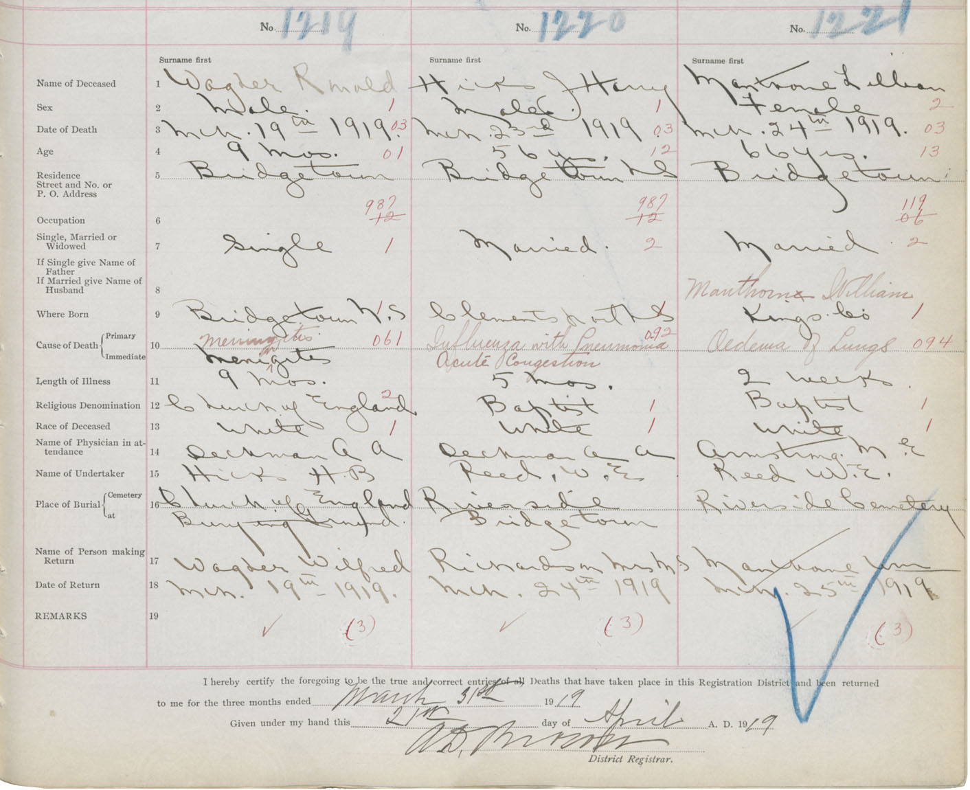 Death Registration: Year: 1919 book: 27 page: 449 number: 1221
