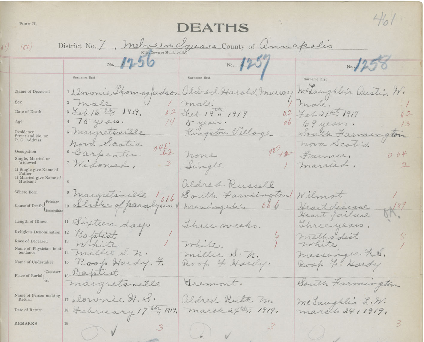 Death Registration: Year: 1919 book: 27 page: 461 number: 1258
