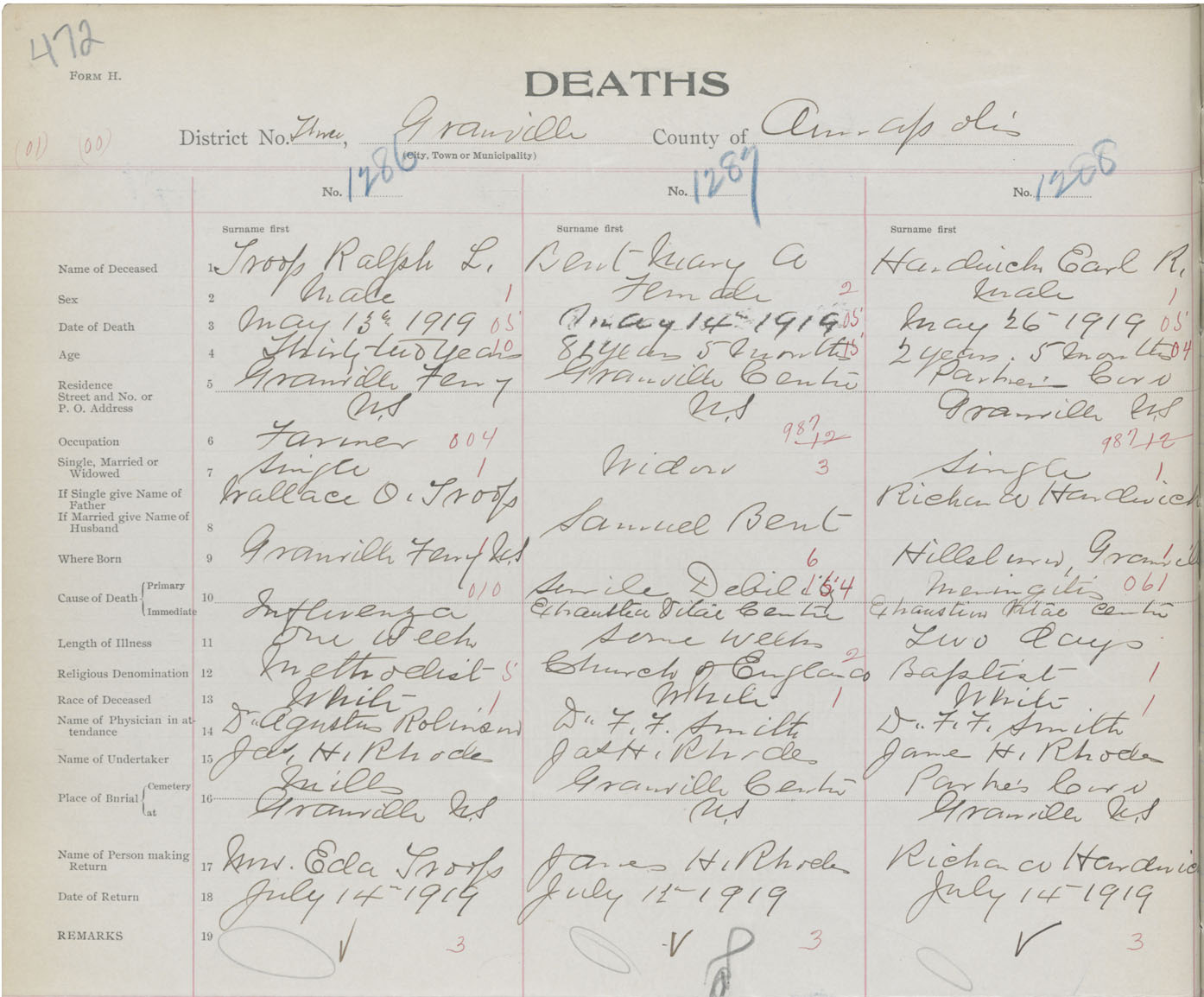 Death Registration: Year: 1919 book: 27 page: 472 number: 1288