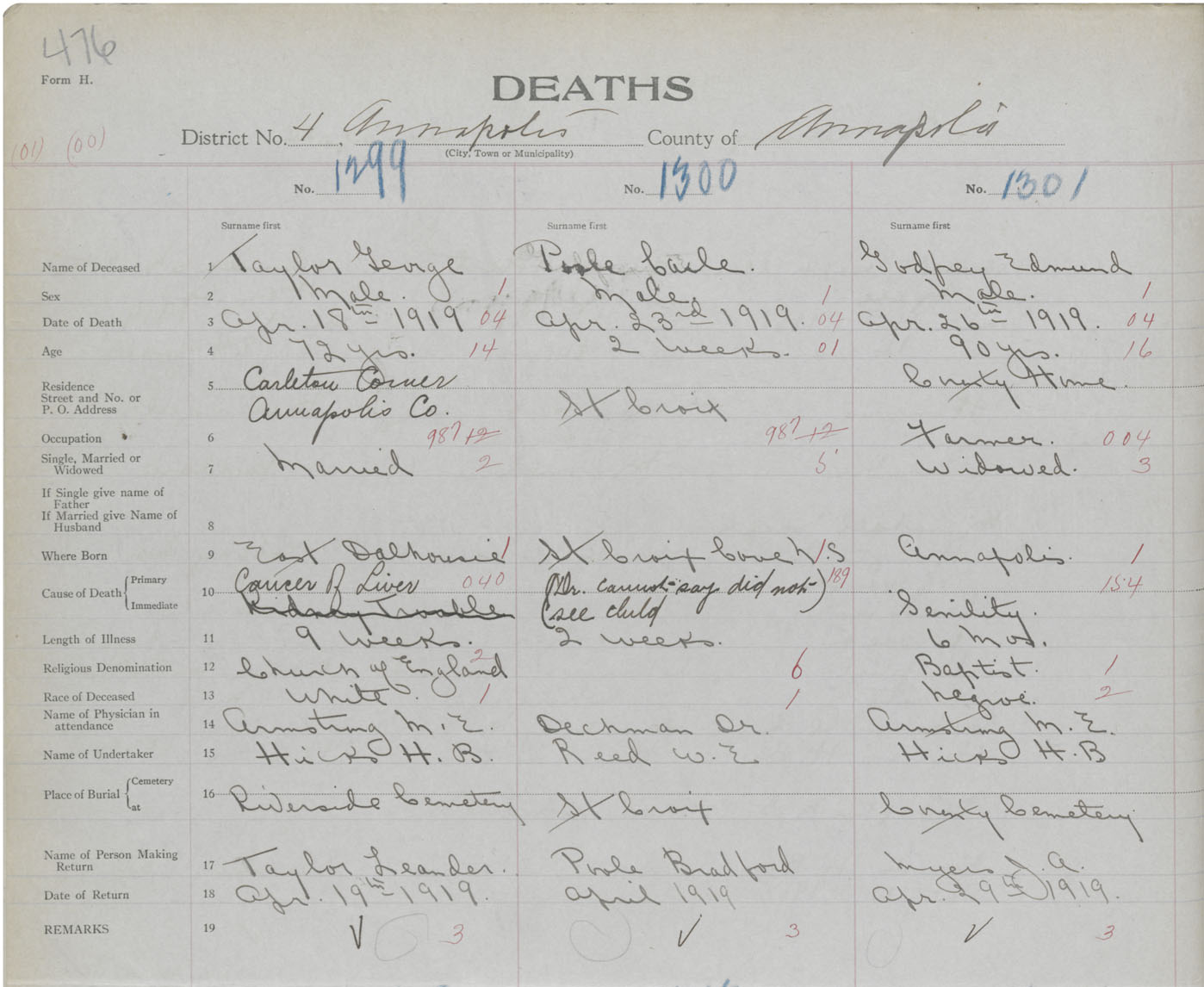Death Registration: Year: 1919 book: 27 page: 476 number: 1301