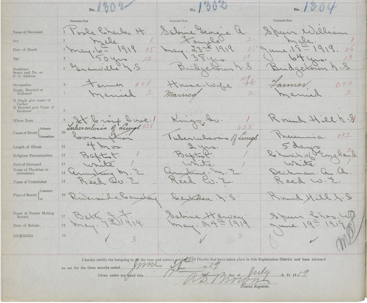Death Registration: Year: 1919 book: 27 page: 476 number: 1304