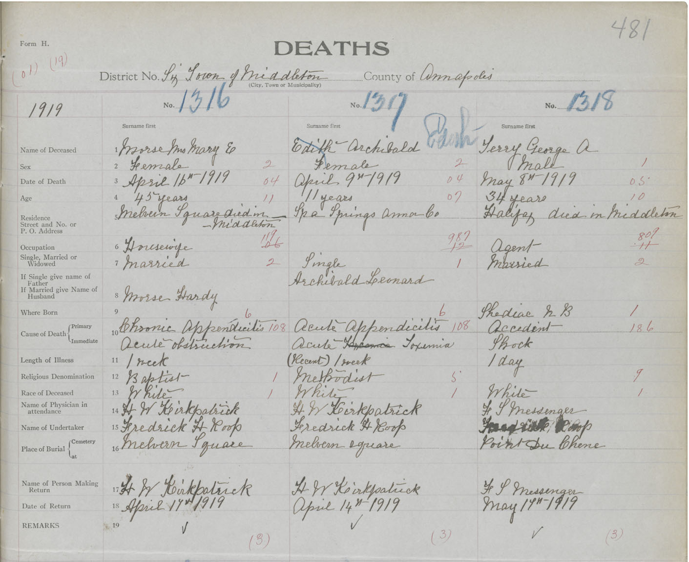 Death Registration: Year: 1919 book: 27 page: 481 number: 1318