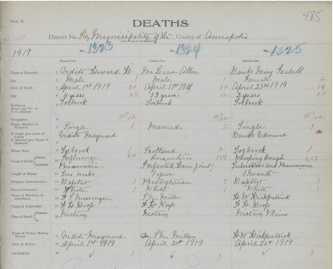 Death Registration: Year: 1919 book: 27 page: 485 number: 1325