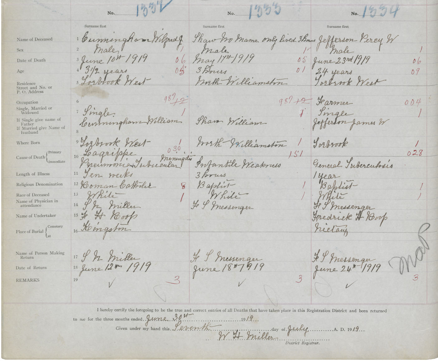 Male Death Registration: Year: 1919 book: 27 page: 486 number: 1334
