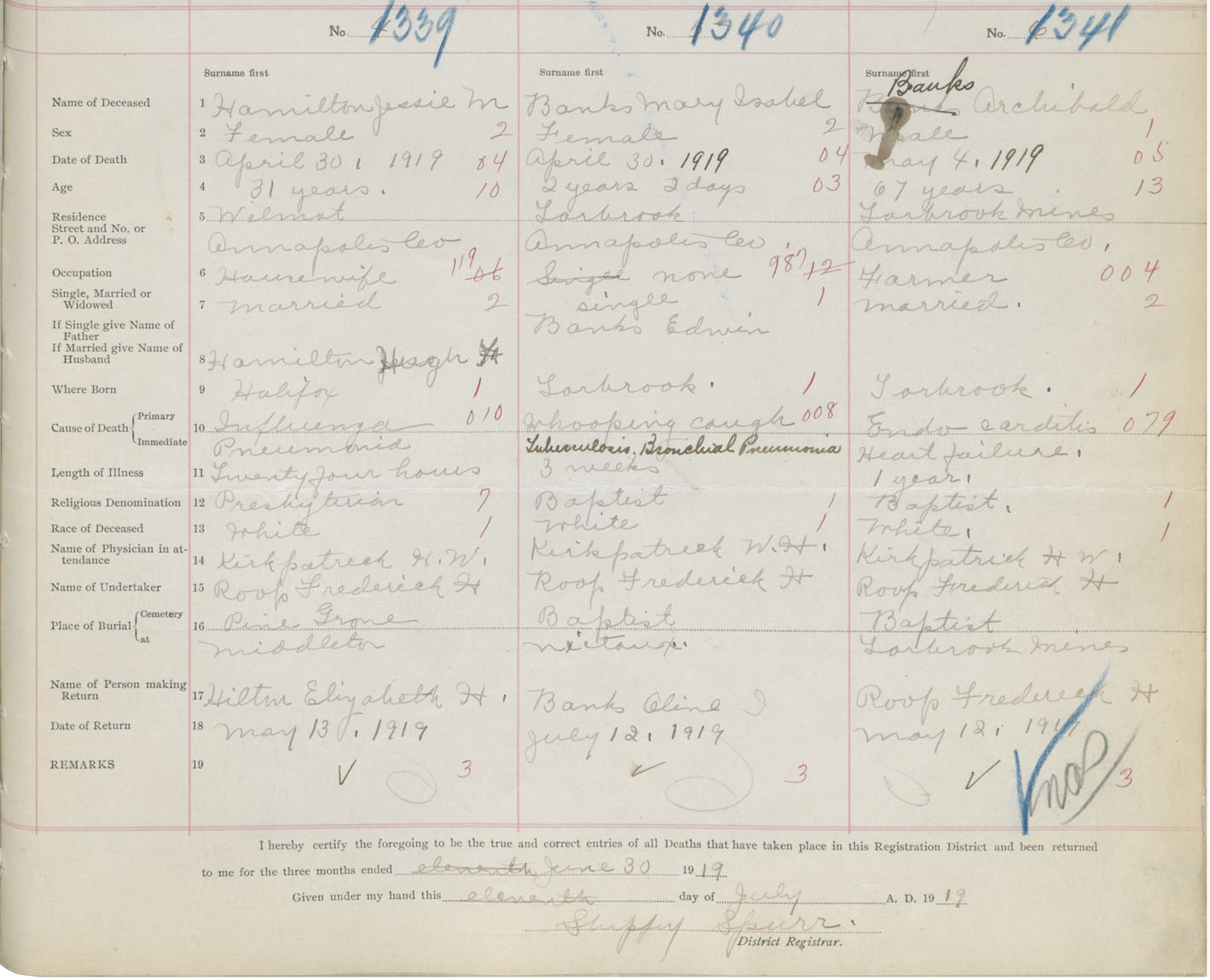 Death Registration: Year: 1919 book: 27 page: 489 number: 1341