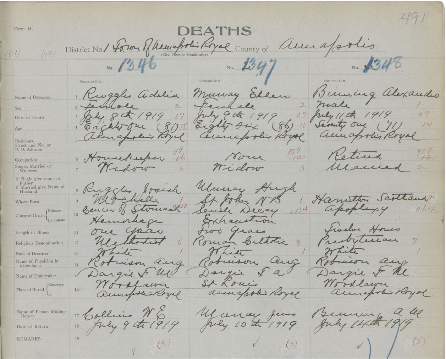 Death Registration: Year: 1919 book: 27 page: 491 number: 1348