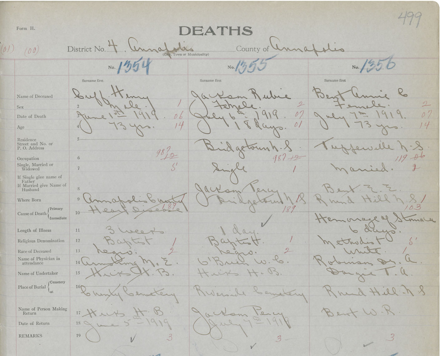 Death Registration: Year: 1919 book: 27 page: 499 number: 1356