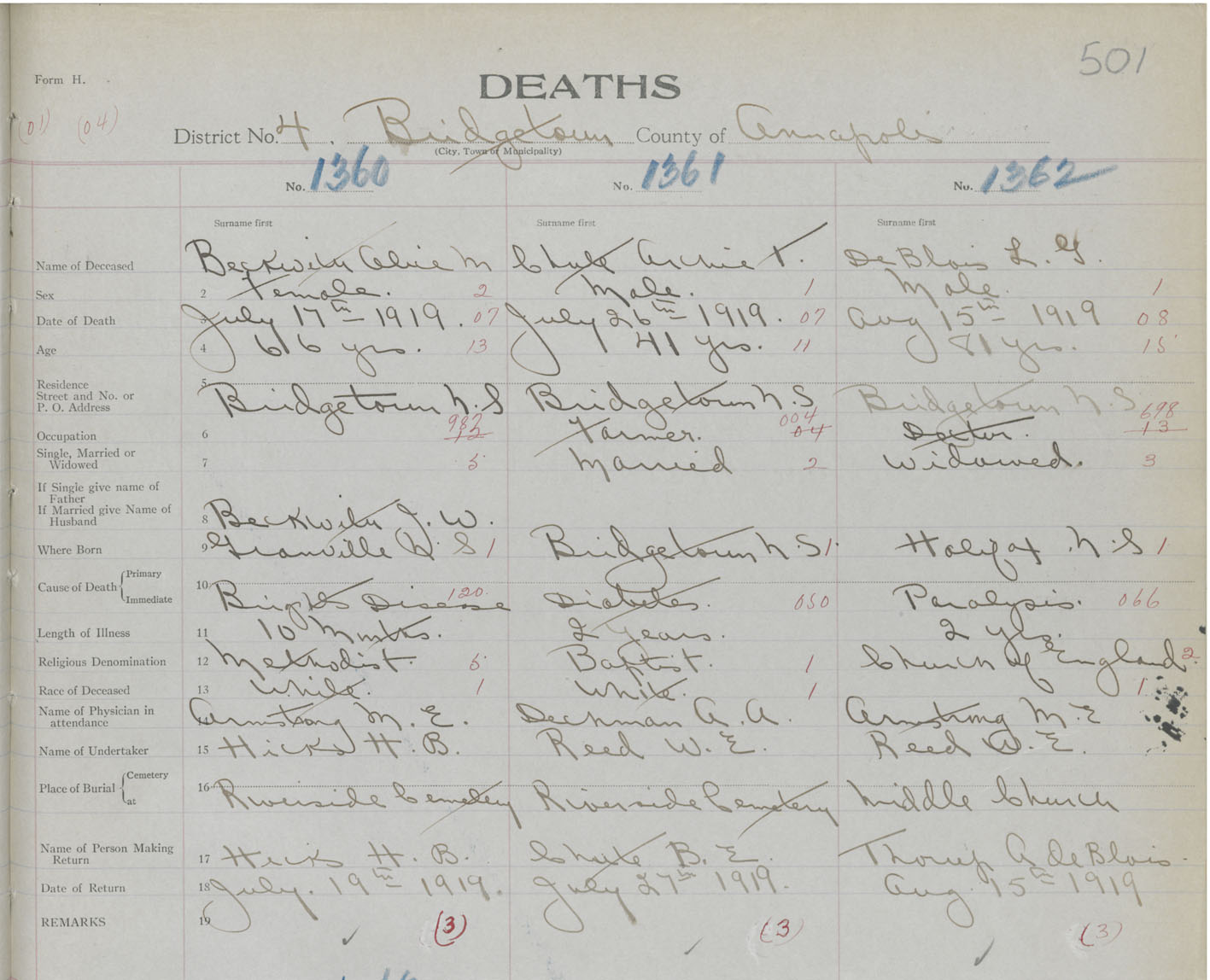 Death Registration: Year: 1919 book: 27 page: 501 number: 1362