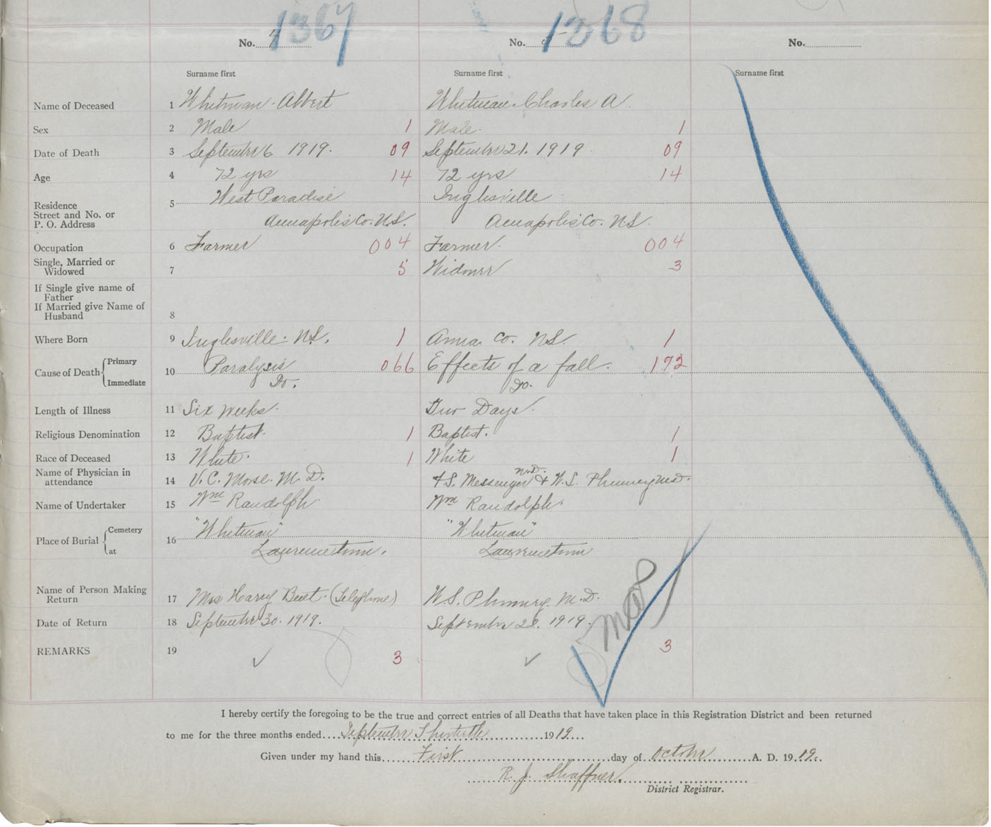 Death Registration: Year: 1919 book: 27 page: 503 number: 1368