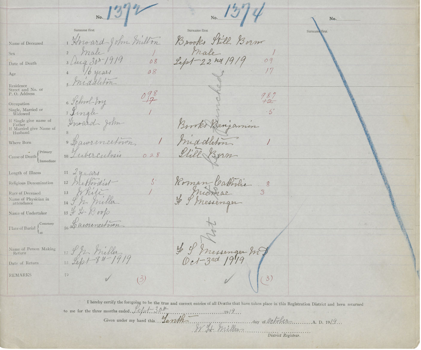 Male Death Registration: Year: 1919 book: 27 page: 505 number: 1374