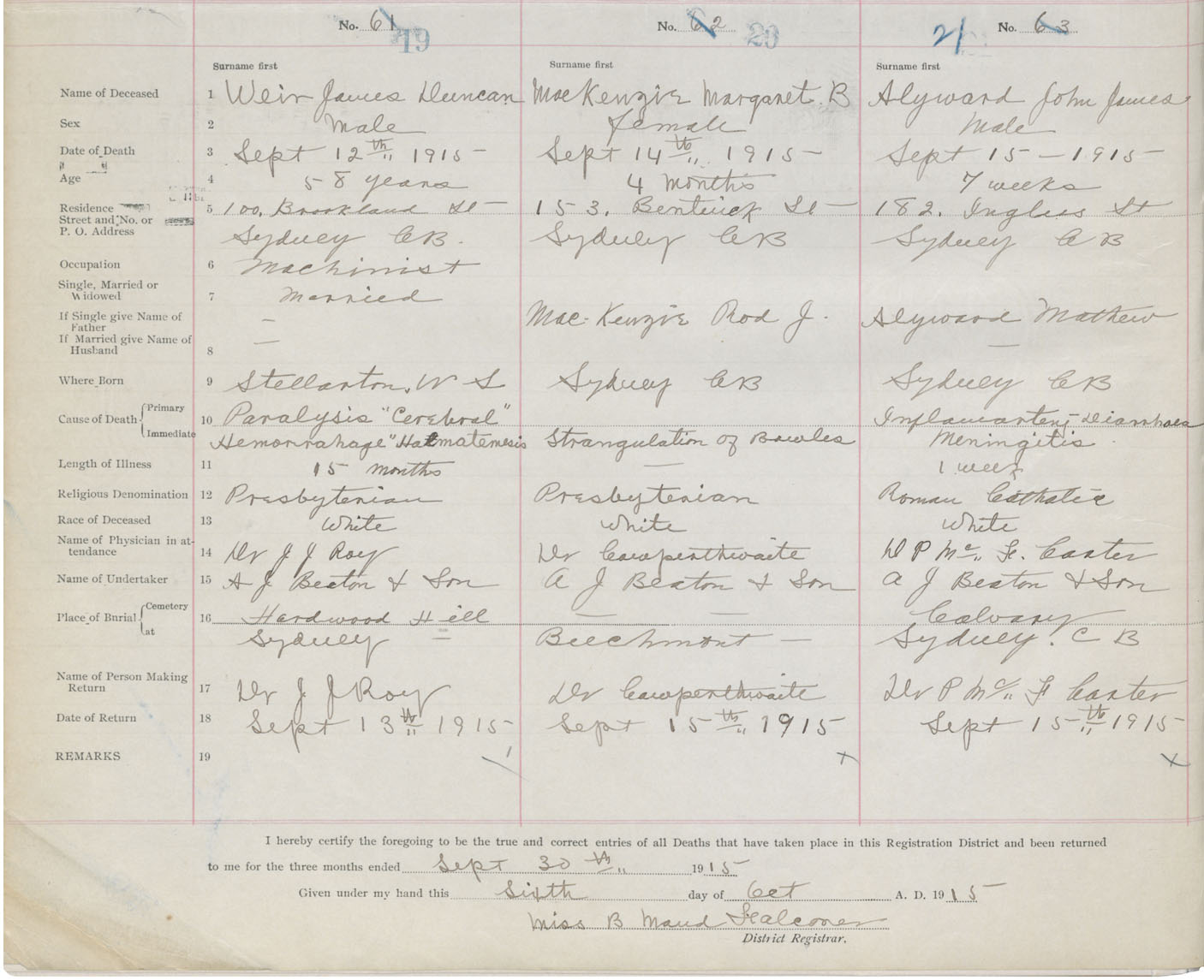 Male Death Registration: Year: 1915 book: 28 page: 4 number: 21