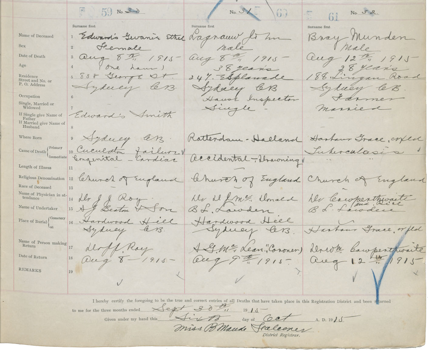 Male Death Registration: Year: 1915 book: 28 page: 11 number: 61