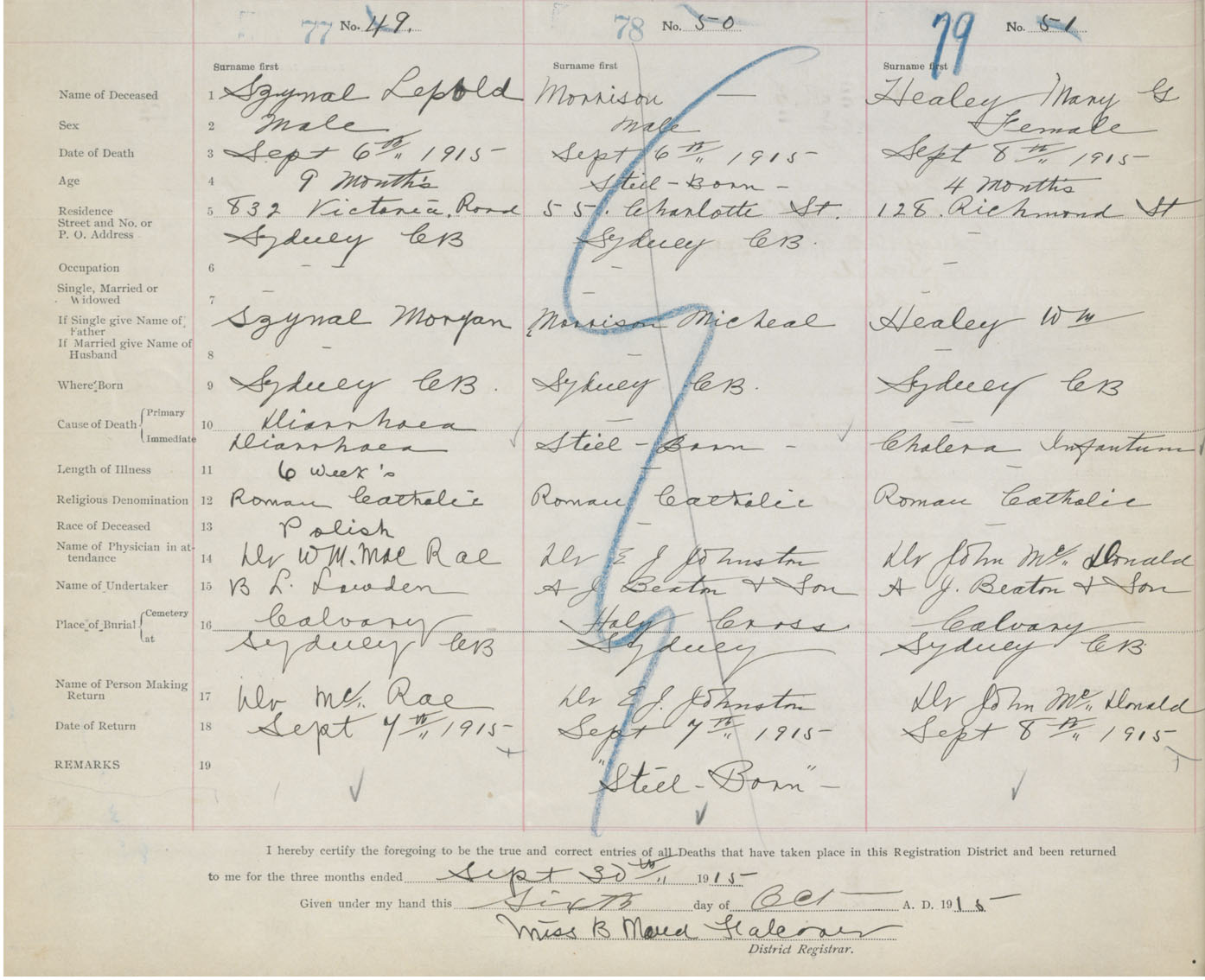 Male Death Registration: Year: 1915 book: 28 page: 14 number: 77