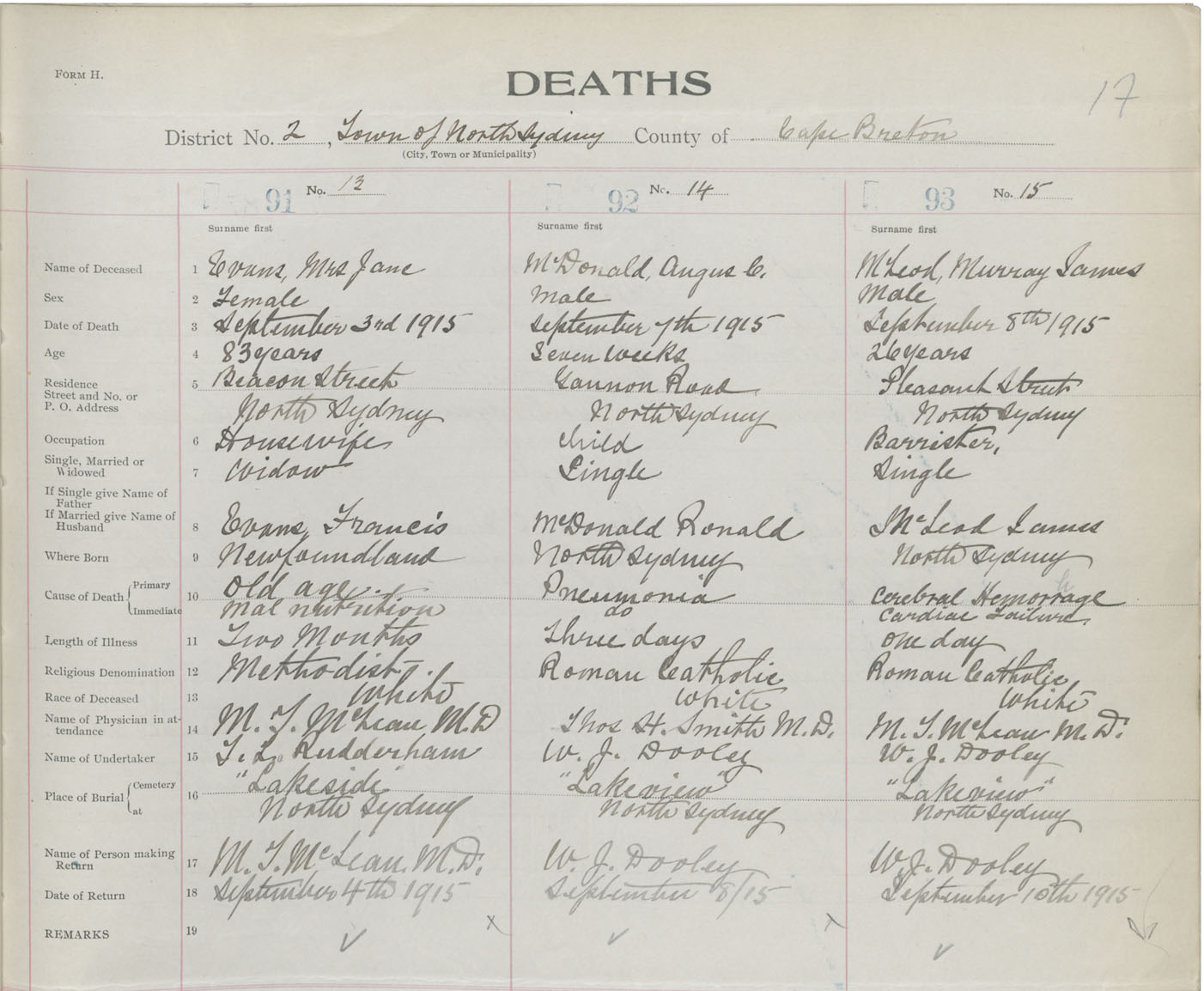 Female Death Registration: Year: 1915 book: 28 page: 17 number: 91