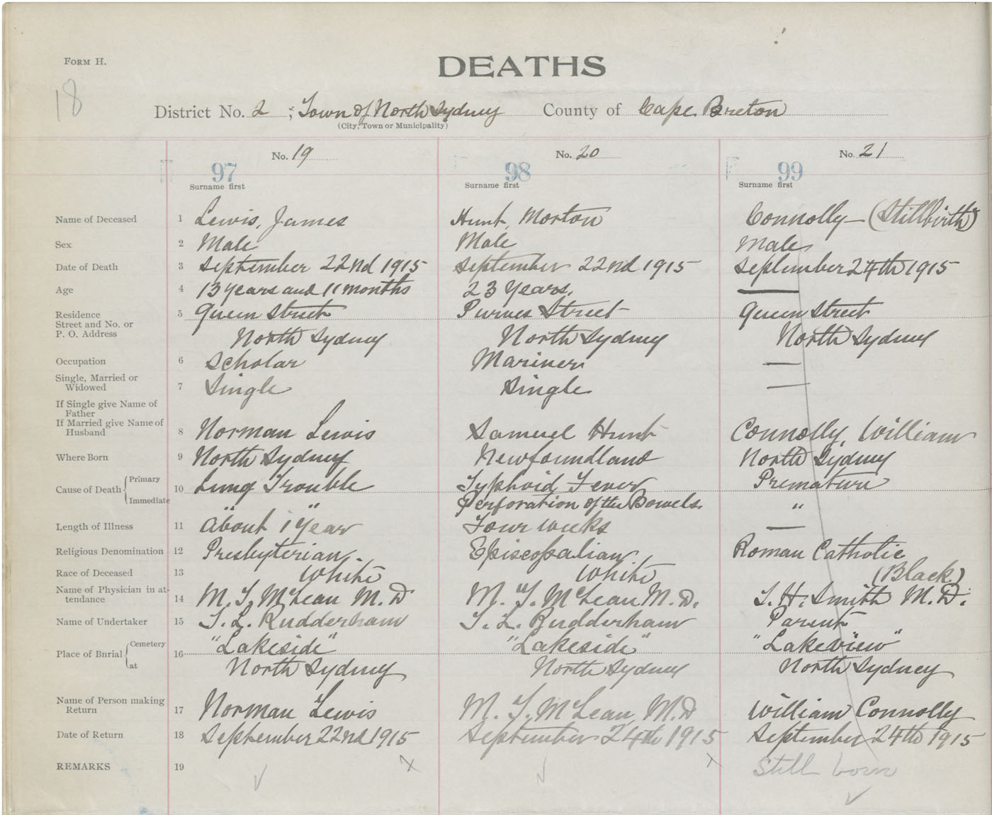 Male Death Registration: Year: 1915 book: 28 page: 18 number: 97