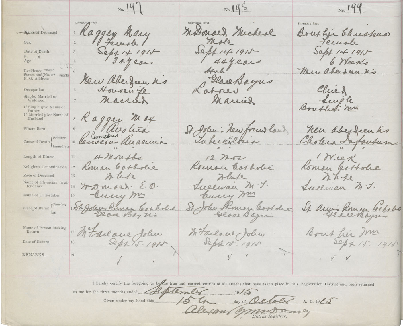 Female Death Registration: Year: 1915 book: 28 page: 38 number: 199