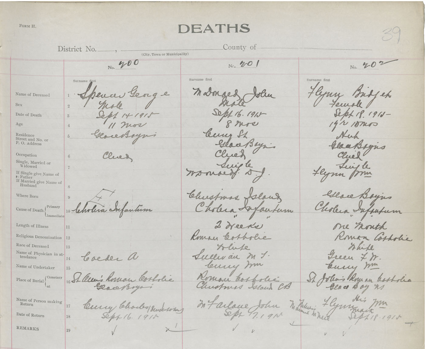 Female Death Registration: Year: 1915 book: 28 page: 39 number: 202