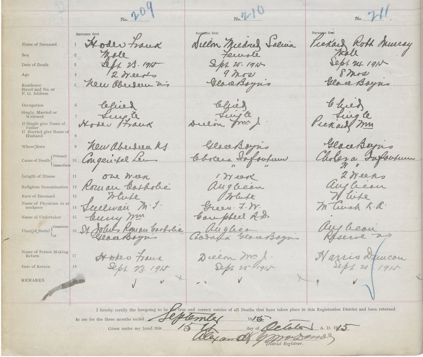 Male Death Registration: Year: 1915 book: 28 page: 40 number: 211