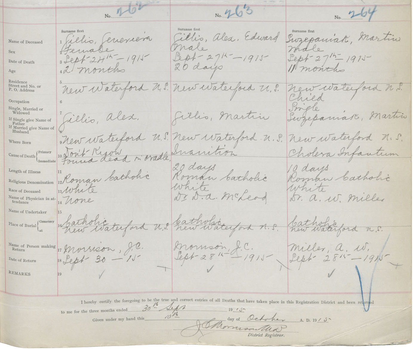 Female Death Registration: Year: 1915 book: 28 page: 57 number: 262