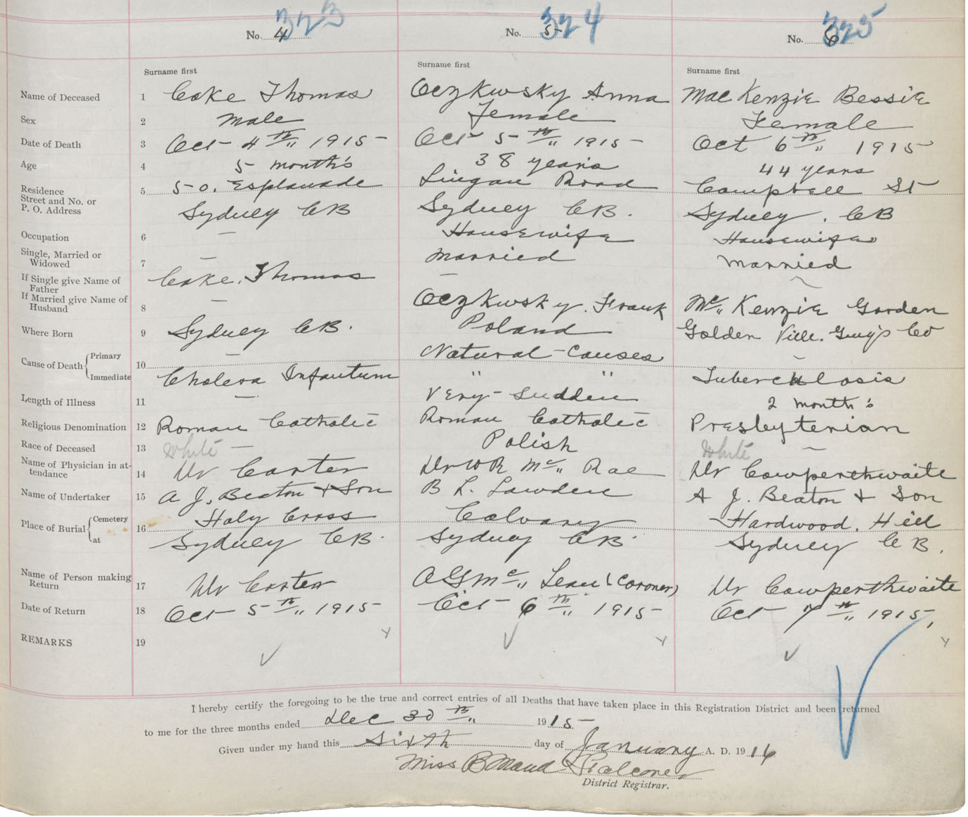 Female Death Registration: Year: 1915 book: 28 page: 91 number: 325