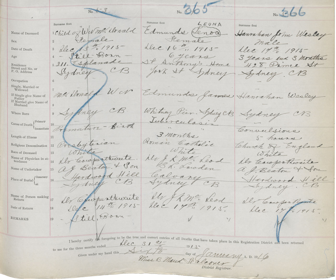 Female Death Registration: Year: 1915 book: 28 page: 99 number: 365