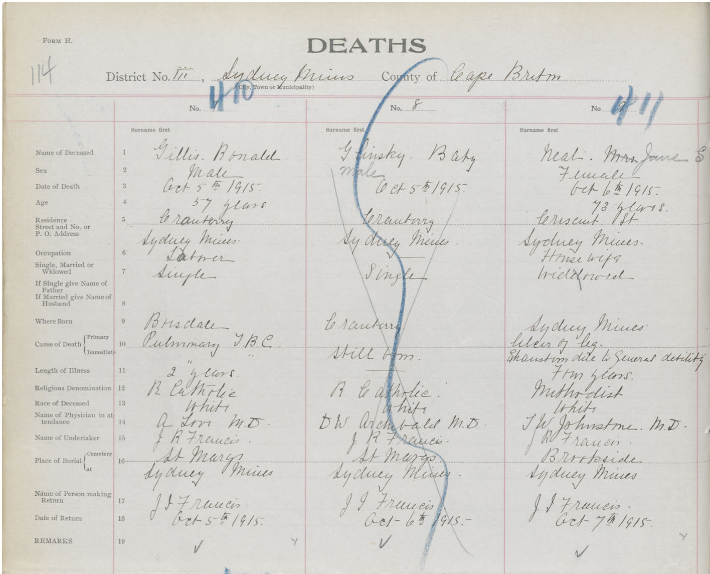 Male Death Registration: Year: 1915 book: 28 page: 114 number: 410