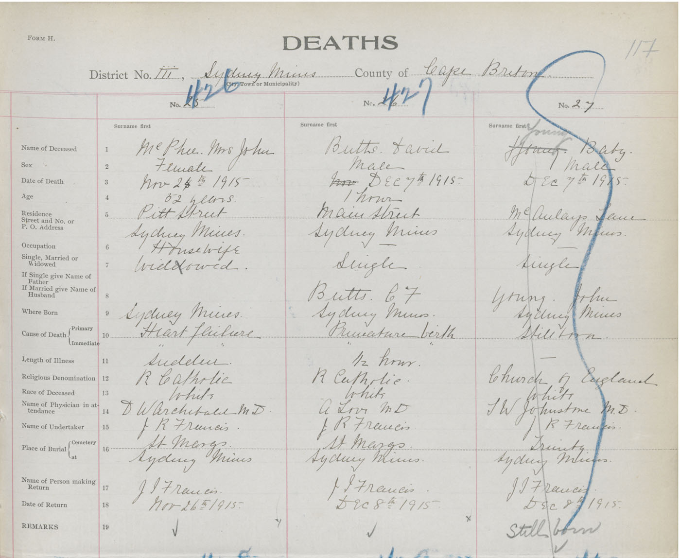 Female Death Registration: Year: 1915 book: 28 page: 117 number: 426